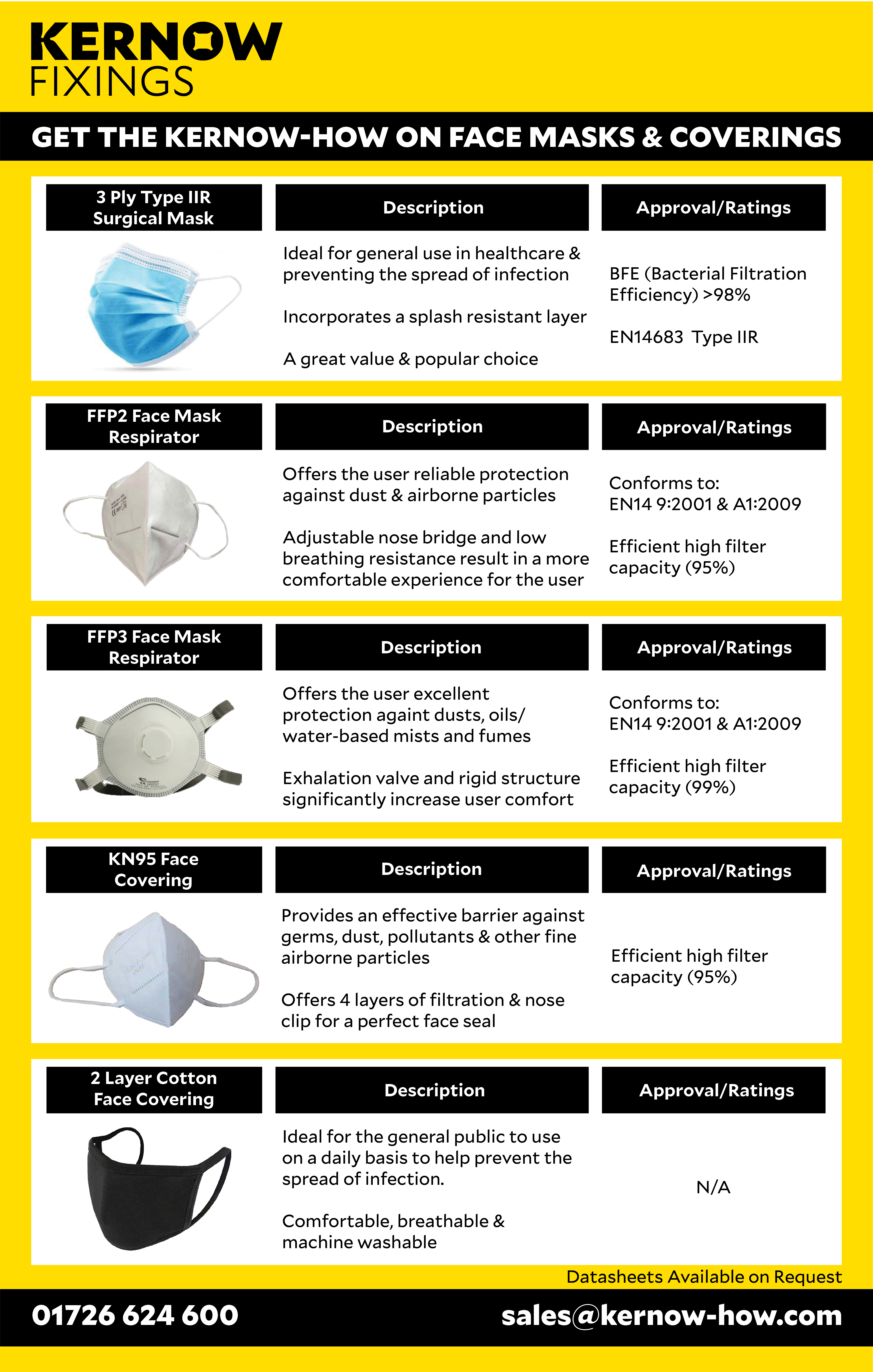 Never before have we heard so much about face masks and face coverings and there are so many available options. But do we really know which type of face mask we should be wearing? Well that really depends on the intended use and environment. They really fall into 3 main categories: