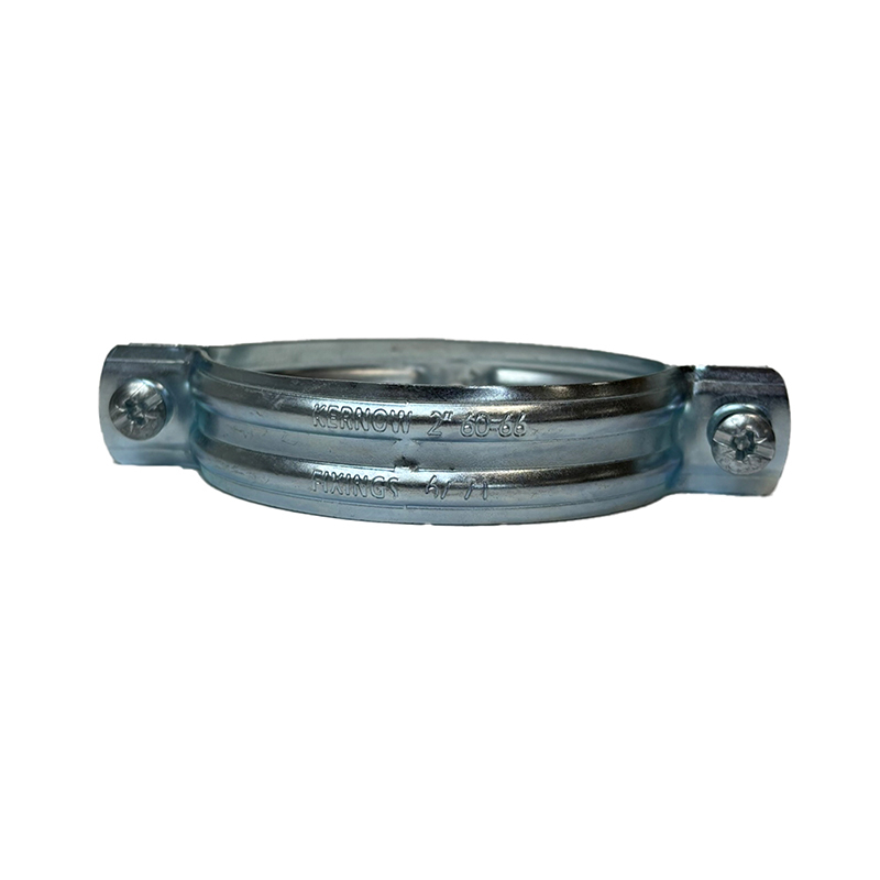 Two-piece pipe clamps with an electro galvanized (electro zinc plated). Manufactured from pressed, mild steel with a reinforced surface profile for optimal strength.